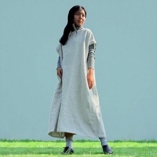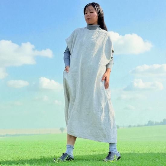 天然素材ならでは。優しさと安心を兼ね備える、100%リネン生地のワンピースです。しっかりとした厚みのある、リネン100%生地。