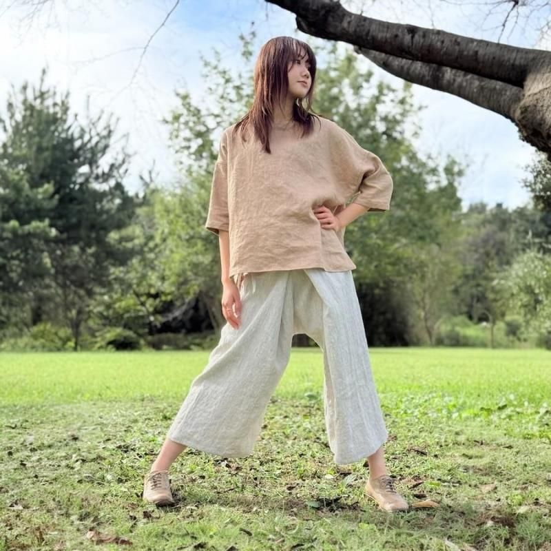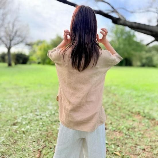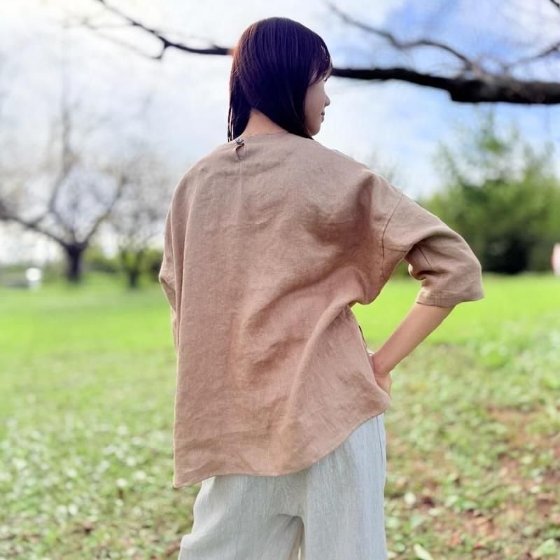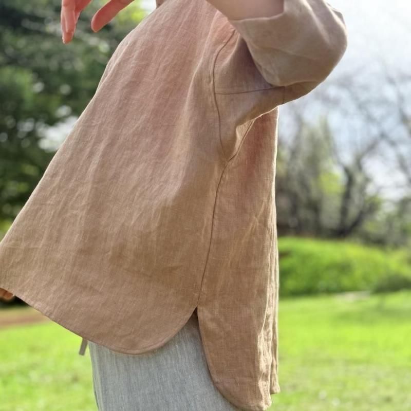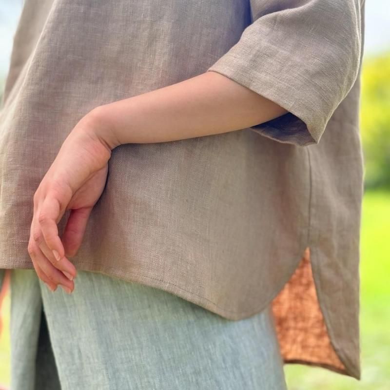 Takane Sewing Studio のプルオーバーシャツは、リネンやヘンプの心地よさを大切にしながら、「こんなのあったらいいな」を形にした一枚です。