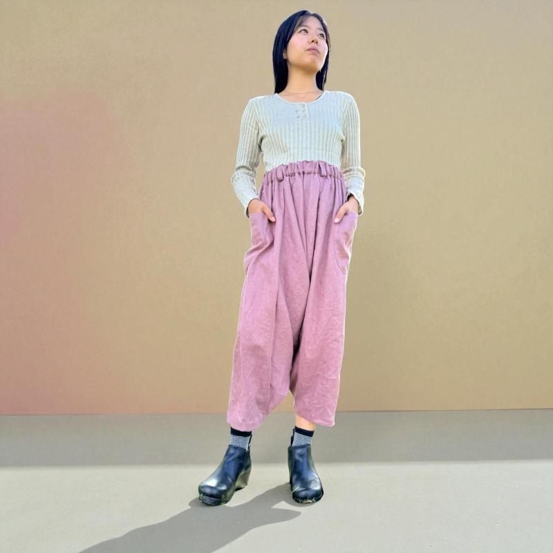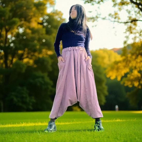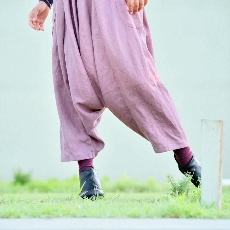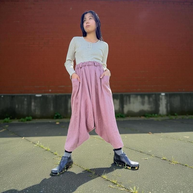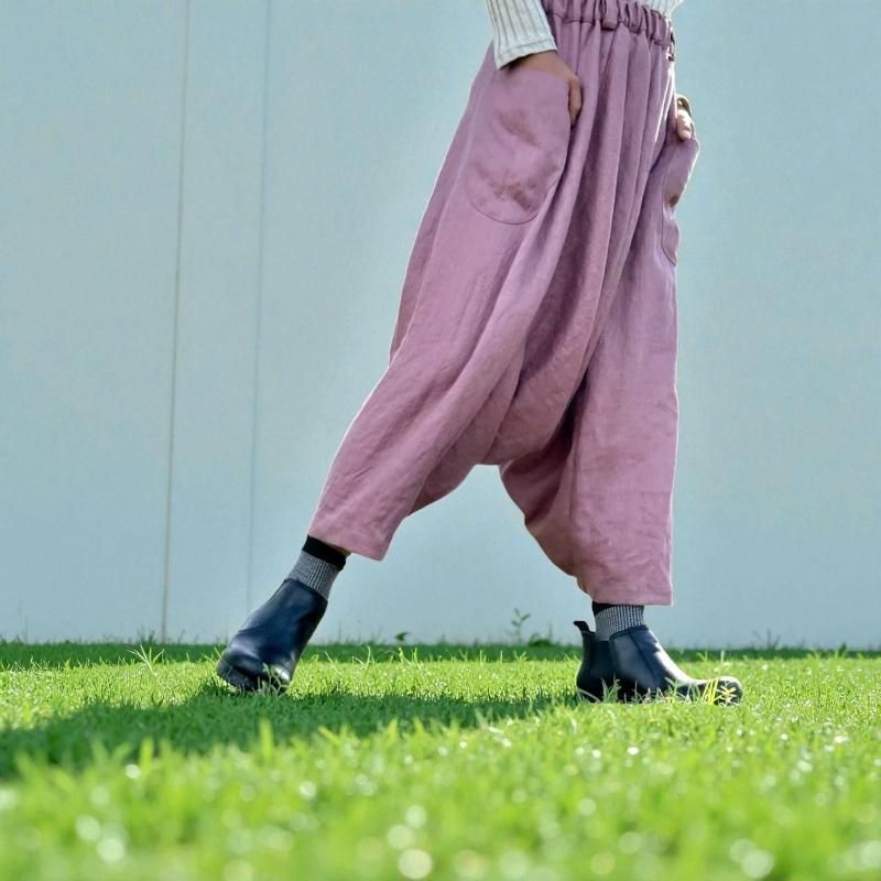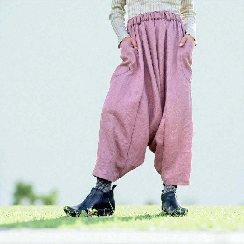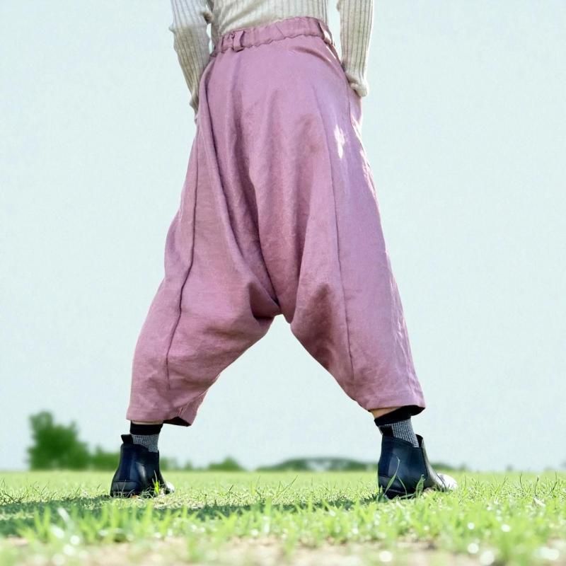 暑い夏も寒い冬も、この一着で快適に過ごせる。それがこのサルエルパンツの最大の魅力です。