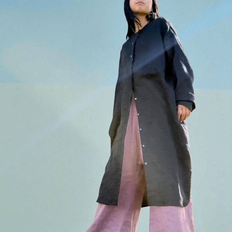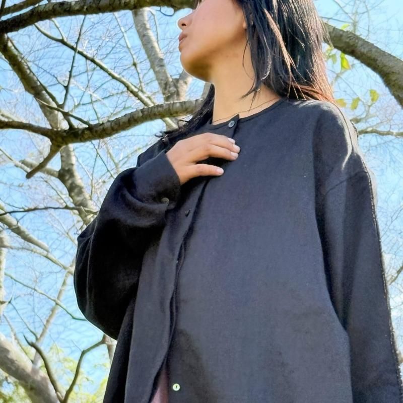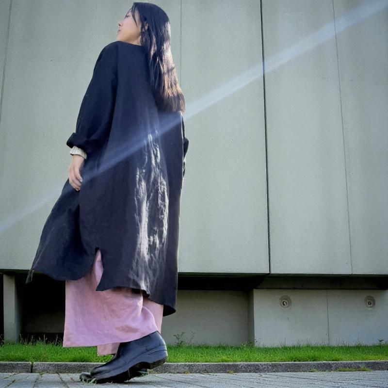 もしかしたら、私ががお届けするノーカラーロングシャツワンピースが、解決してくれるかもしれません。