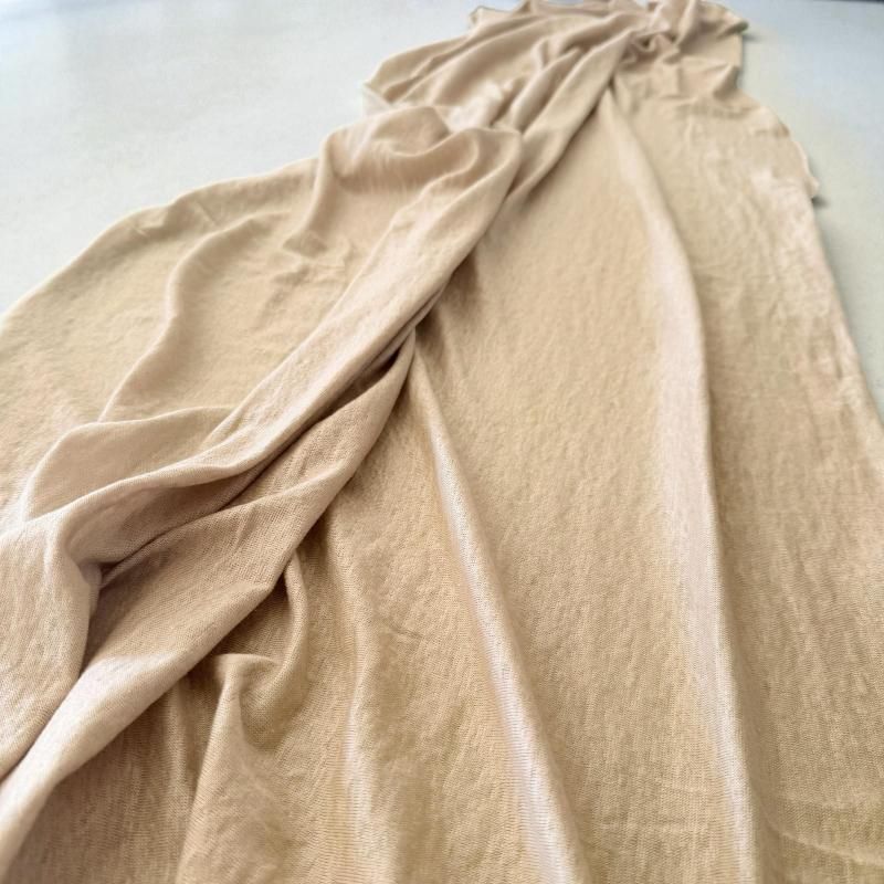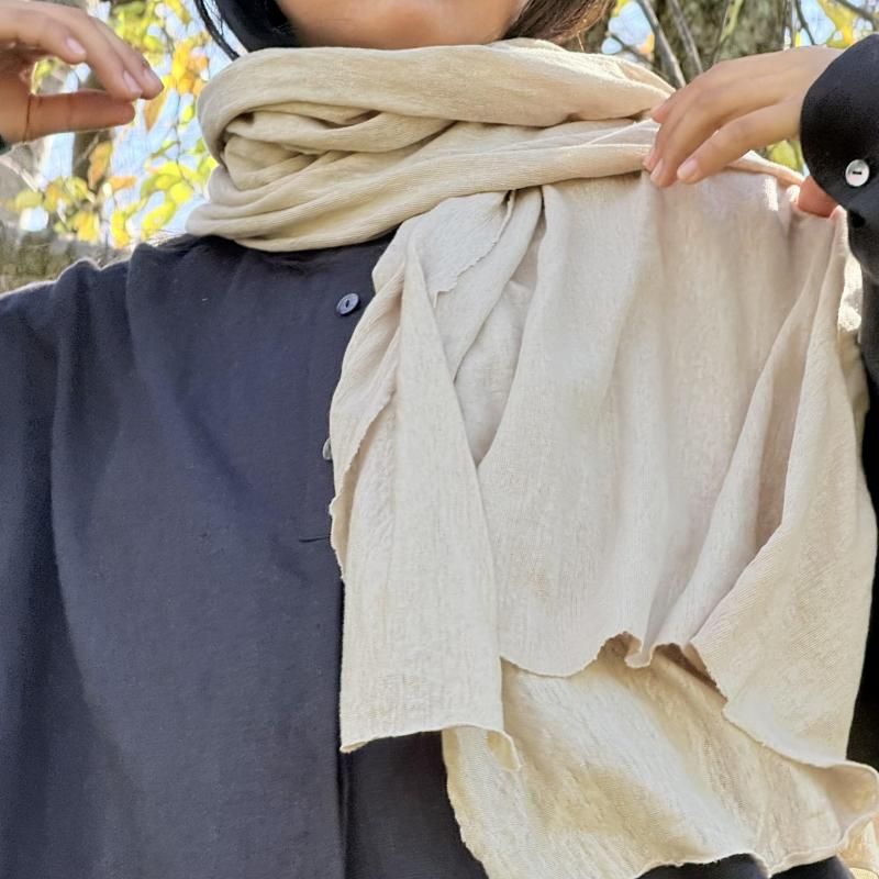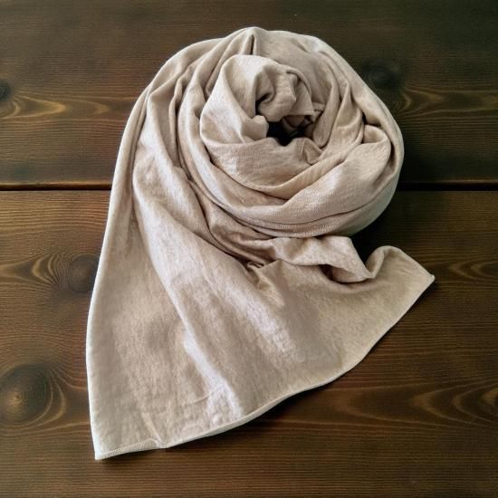 こんなの探してた!リネン100%のニットストールです。リネン100%の薄手ジャージのような、伸縮性のある素材。