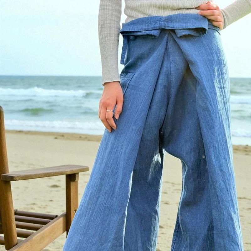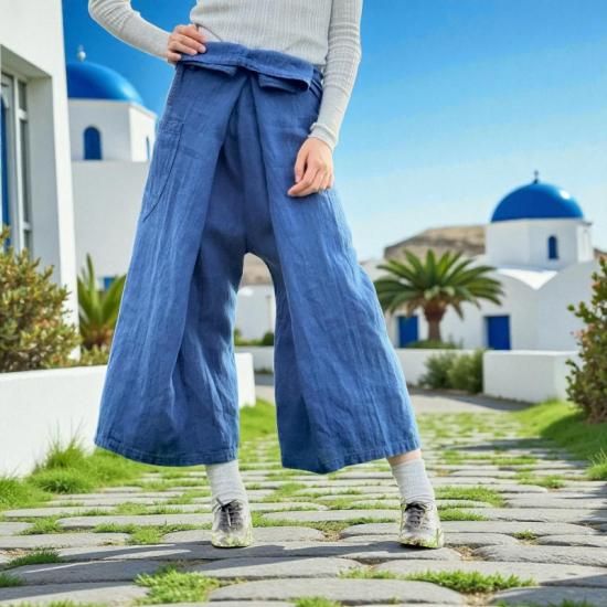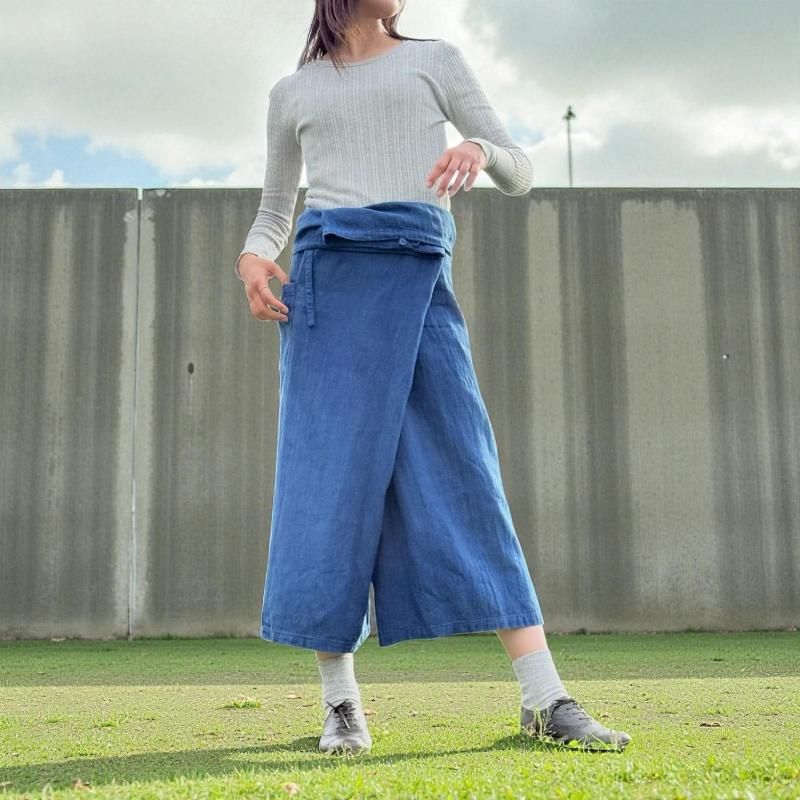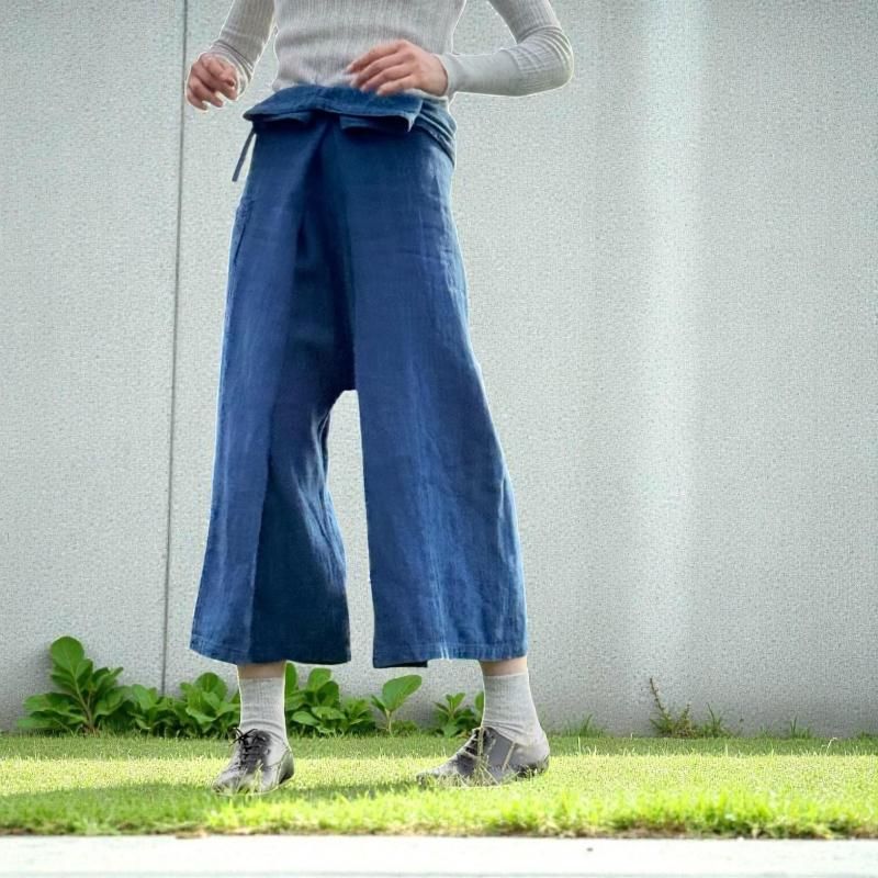 Takane Sewing Studio のオリジナルタイパンツは、シンプルでありながら、1着で6通りもの着こなしを楽しめます。
