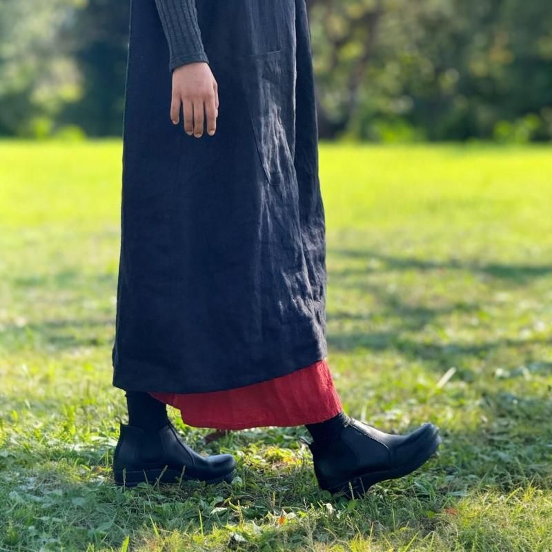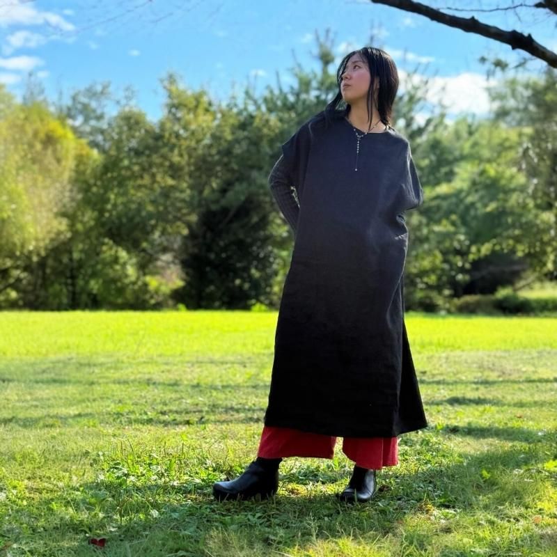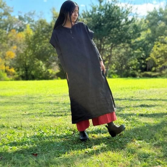 セットアップ:ボックスロングワンピース フレンチリネン ブラック+タイパンツ リネンラミー 紅緋色