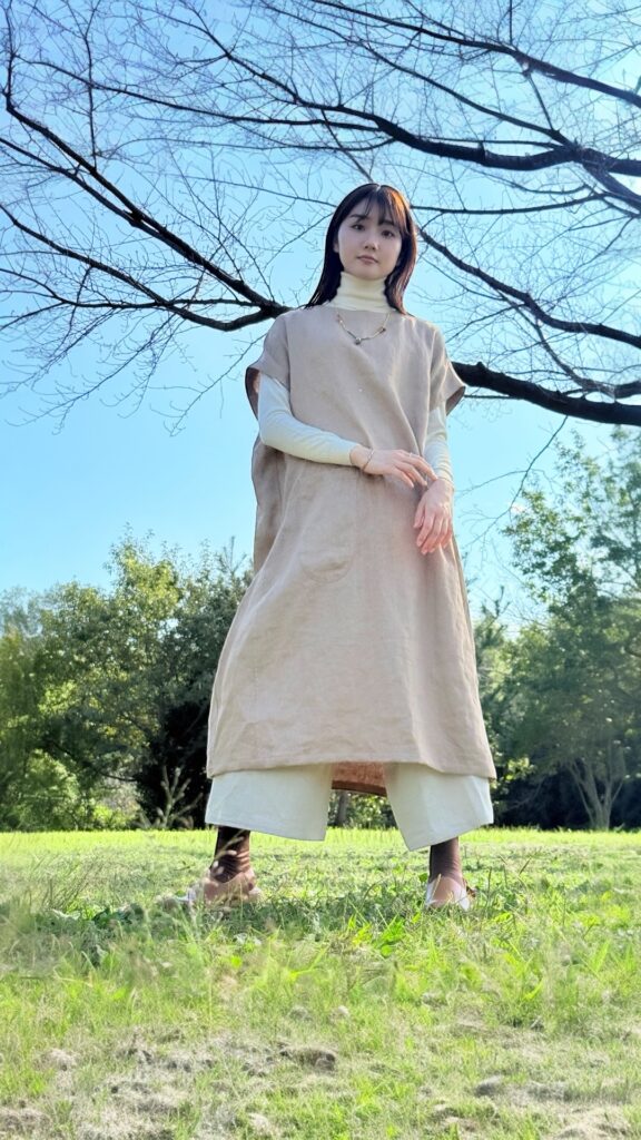6. ボックスロングワンピース フレンチリネン ベージュ