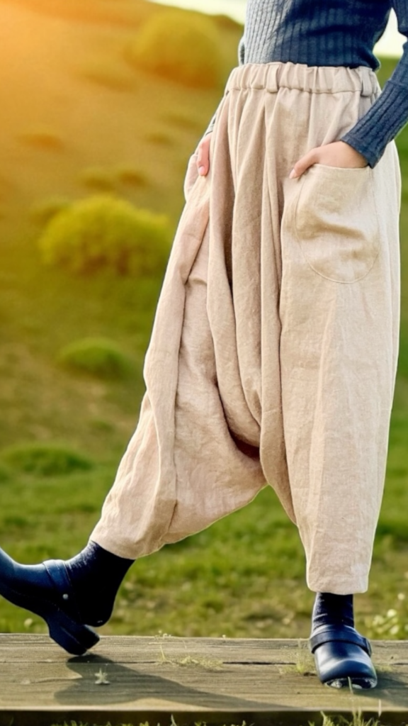「開放感を、日常に。」 「サルエルは若者のもの」という先入観を、このパンツは覆します。股下の可動域を広く取った独特の設計は、どんな動きも制限しません。階段を上る時、椅子に腰掛ける時。突っ張ることのない開放感は、一度知ると手放せなくなります。上質なフレンチリネンの落ち感が、美しいシルエットを描き、大人にふさわしいユーモアと上品さを演出します。